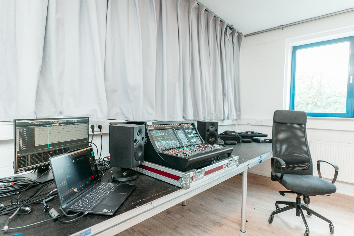 Ausgestattet mit moderner Misch-, Monitoring- und Netzwerktechnik bietet der Regieraum optimale Voraussetzungen für Livestreams, hybride Veranstaltungen, Proben, Shows und Content-Produktionen. Alle Systeme sind redundant, übersichtlich strukturiert und direkt mit Studio, Bühne und Infrastruktur verbunden – für sichere Abläufe, kurze Reaktionszeiten und einen reibungslosen Produktionsbetrieb.
